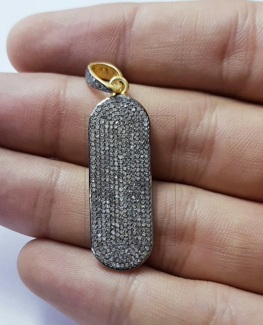 Beautiful Rosecut Pave Diamond Pendant 925 Sterling Silver Handmade Finish Diamond Pendant / Connector Jewelry