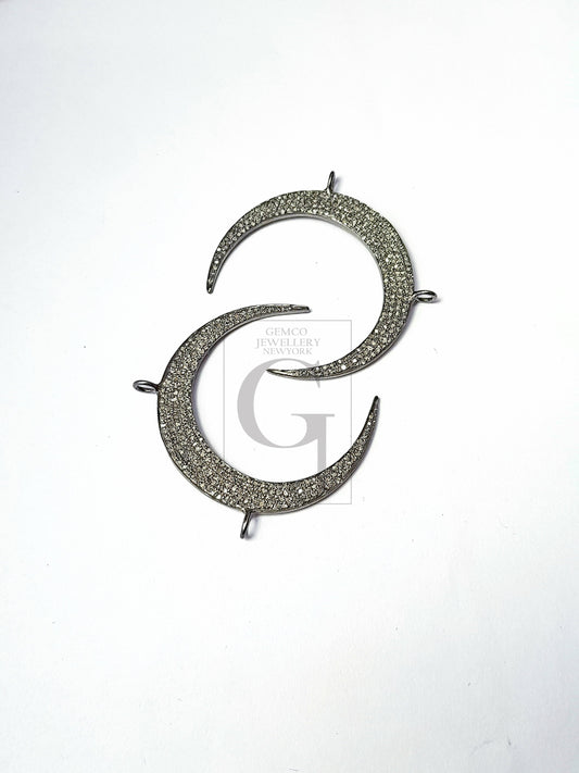 Pave Diamond Rosecut Connector 925 Sterling Silver Connector handmade Diamond Bracelet Connector Moon Design Beautiful Pendant Charm