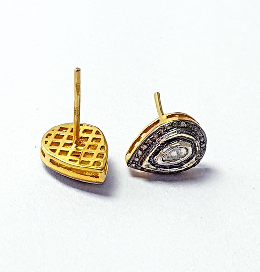 Slice Diamond, Vintage Look Polki Designer Studs Tops Earring Rosecut Pave Diamond Earring Sterling Silver Handmade Gold Look Diamond Earring
