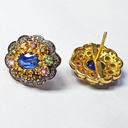Tanznite And Tourmaline Pave Rosecut Diamond 925 Sterling Silver Handmade Very Beautiful Studs Latest Design Diamond Pave Stud Earrings