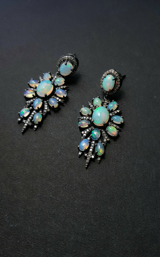 Rosecut pave diamonds and Ethiopian opal AAA nice quality earring,antique look designer unique one of a kind earring