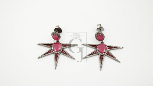 Star design ruby enameling designer earring Rosecut pave diamond earrings 925 sterling silver handmade silver finish diamond earrings