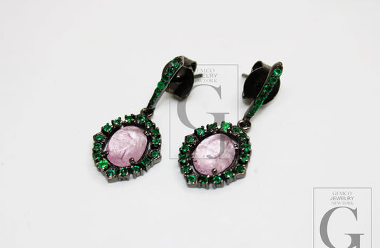 Tourmaline Earring Designer Earring Rosecut Pave Emerald Earrings 925 Sterling Silver Handmade Silver Finish Emerald Earring