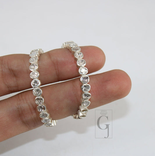 Silver white finish designer polki hoops earring Rosecut polki diamond earrings 925 sterling silver handmade finish diamond boho earring