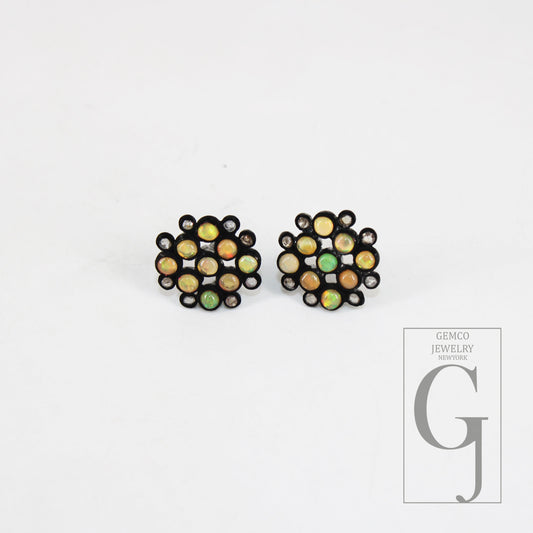 Stud earring fire Opal earring Pave rosecut diamond 925 sterling silver handmade beautiful studs latest design diamond pave stud earrings