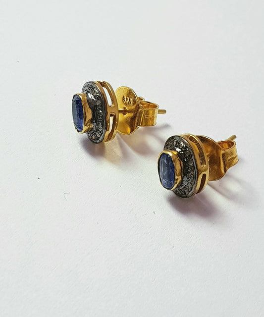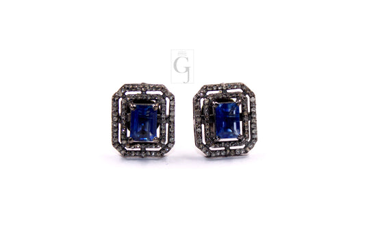 Very Beautiful Kyanite Stud Earrings Tops Pave Rosecut Diamond 925 Sterling Silver Handmade Diamond Pave Stud Earrings