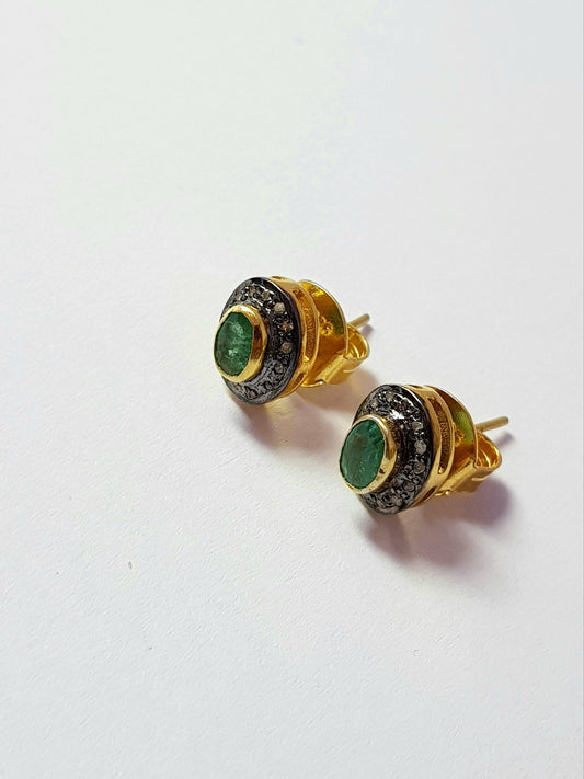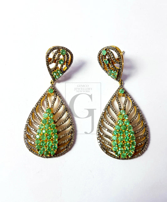 Very beautiful emerald vermail gold designer Rosecut pave diamond earrings 925 sterling silver handmade silver finish diamond earrings