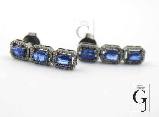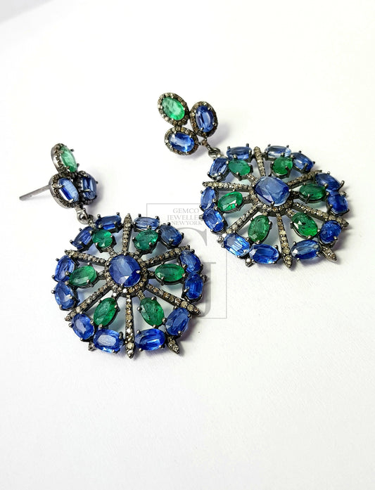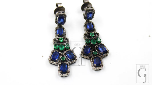 Very beautiful designer kyanite emerald earring Rosecut pave diamond earrings 925 sterling silver handmade silver finish diamond earring