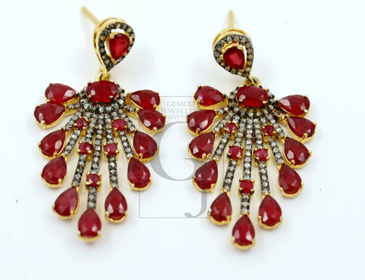 Very beautiful designer Vermail Gold Ruby designer earring stone with rosecut diamond pave setting diamond earring