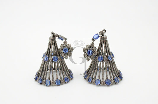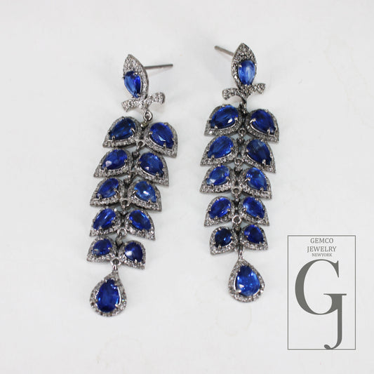 Very Beautiful Kyanite Designer Earring Rosecut Pave Diamond Earrings 925 Sterling Silver Handmade Silver Finish Diamond Earring