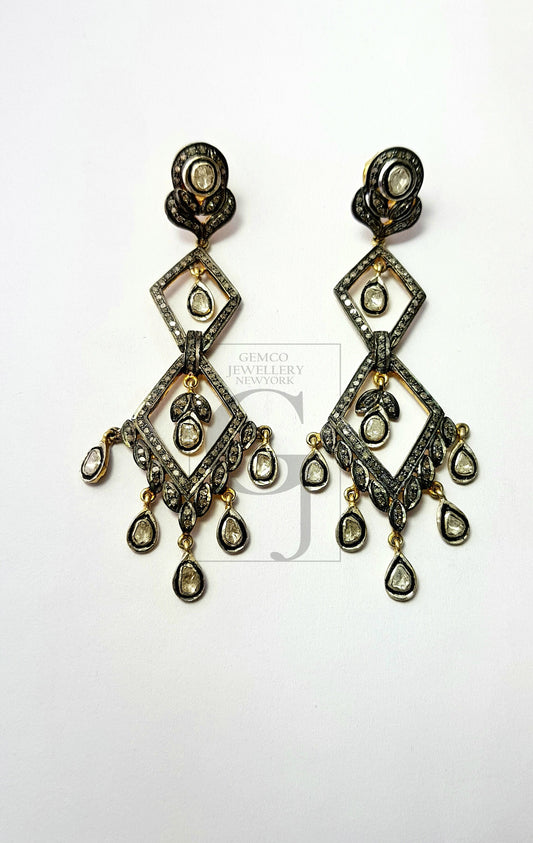 Very Beautiful Diamond Earrings Rosecut Pave Diamond Earrings 925 Sterling Silver Handmade Silver Finish Diamond Earrings