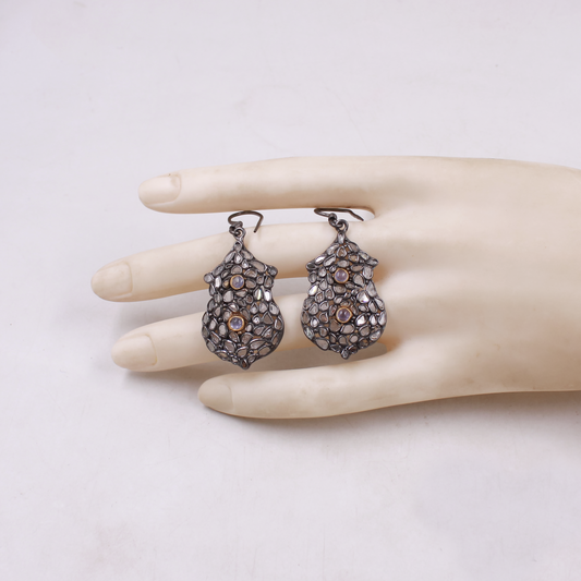 Vintage Polki Diamond & Tanzanite Earrings – 925 Sterling Silver Handmade Rosecut Slice Diamond Jewelry