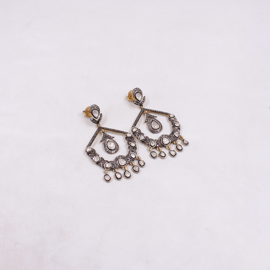Vintage Polki Diamond Dangle Earrings In Gold-Plated 925 Sterling Silver – Antique Handmade Finish Jewelry