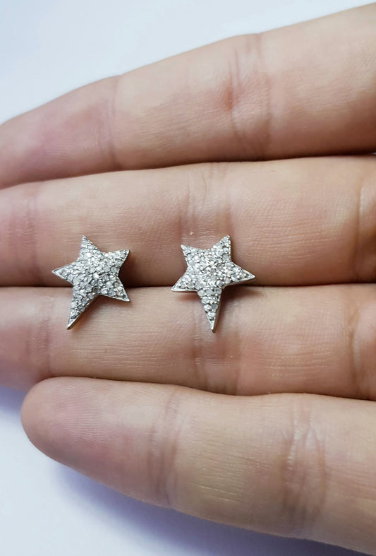 Beautiful Design Rosecut Pave Diamond Stud Earrings 925 Sterling Silver Handmade Silver Finish Star Shaped Designer Diamond Stud Earrings