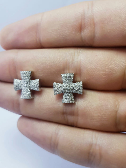Beautiful Design Rosecut Pave Diamond Stud Earrings 925 Sterling Silver Handmade Silver Finish Cross Shaped Designer Diamond Stud Earrings