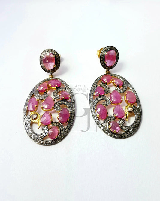 Beautiful bird designer ruby earring Rosecut pave diamond earrings 925 sterling silver handmade silver finish diamond earrings