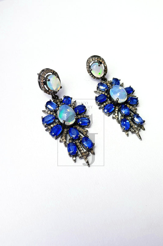 Beautiful Designed Kyanite And Opal Pave Diamond Earring Sterling Silver Earring Pave Diamond Silver Earring 925 Sterling Diamond Earring