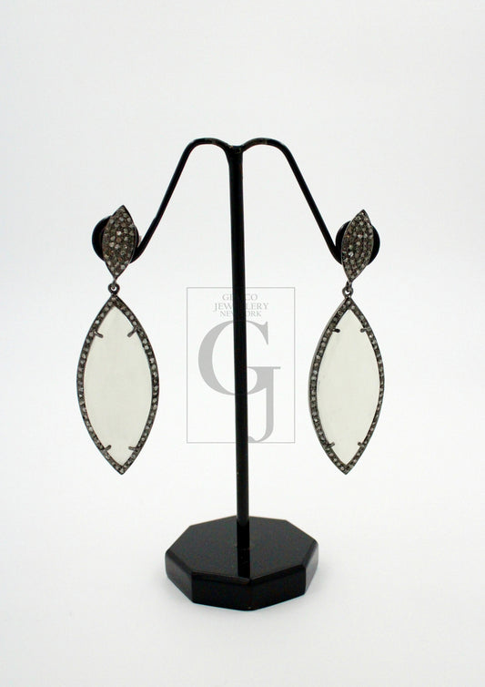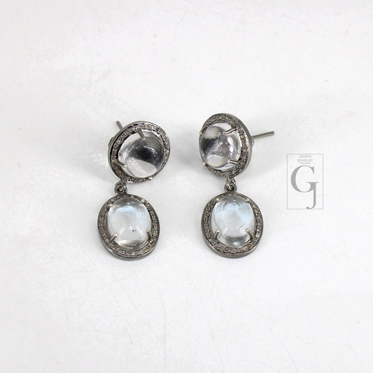 Beautiful Designer Moonstone Designer Rosecut Pave Diamond Earrings 925 Sterling Silver Handmade Silver Finish Diamond Earrings