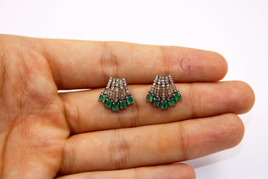 Beautiful Designer Emerald Stud Earrings Tops Pave Rosecut Diamond 925 Sterling Silver Handmade Diamond Pave Stud Earrings