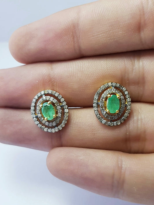 Beautiful Designer Rosecut Pave Diamond Stud Earrings 925 Sterling Silver Handmade Silver Finish Real Emerald Diamond Stud Earrings Charms