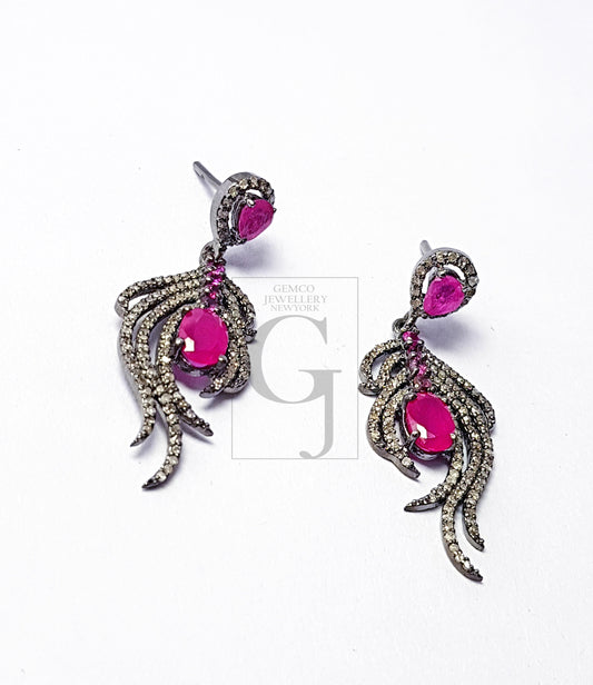 Beautiful Designer Ruby Earrings Pave Diamond Earrings Sterling Silver Earring Pave Diamond Silver Earring 925 Sterling Diamond Earring