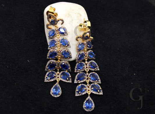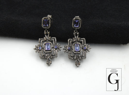 Beautiful Designer Tanzanite Earring Rosecut Pave Diamond Earrings 925 Sterling Silver Handmade Silver Finish Diamond Earring