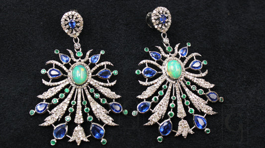 Beautiful Opal And Kyanite Designer Earring Rosecut Pave Diamond Earrings 925 Sterling Silver Handmade Silver Finish Diamond Earring Jewelry