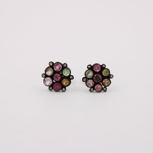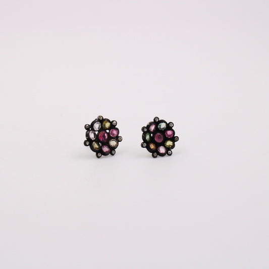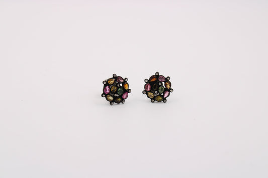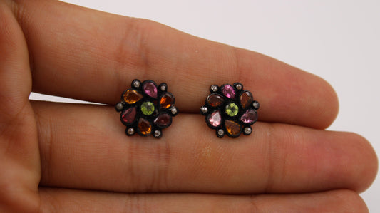 Beautiful Multi Tourmaline Pave Rosecut Diamond 925 Sterling Silver Handmade Very Beautiful Tourmaline Diamond Pave Stud Earrings