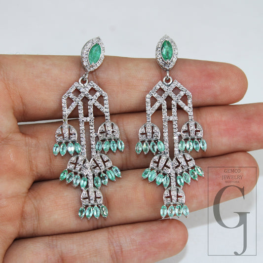 Beautiful Natural Zambian Mine Emerald Stone Designer Earring Rosecut Pave Diamond 925 Sterling Silver Finish Handmade Diamond Earring