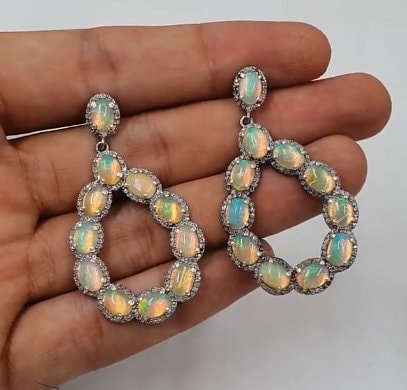 Beautiful Natural Opal Earring Designer Earring Rosecut Pave Diamond Earrings 925 Sterling Silver Handmade Silver Diamond Earring Jewelry