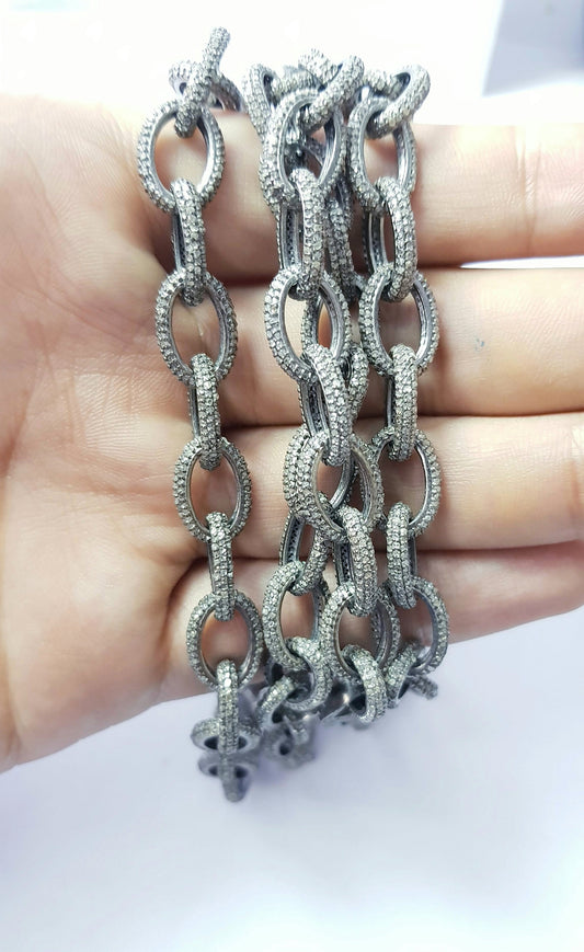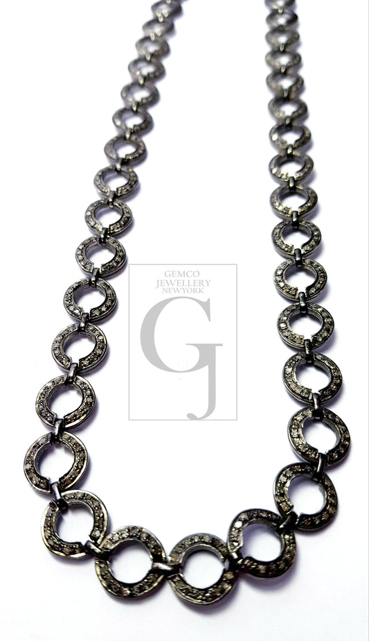 Rose cut pave diamond chain necklace pendent 925 sterling silver handmade oxidised finish diamond chain 36" size with diamond clasps