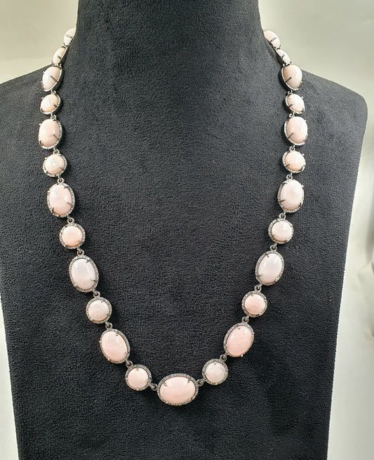 Beautiful Natural Pink Opal Diamond Necklace Rosecut Pave Diamond Jewelry Sterling 925 Silver Handmade Jewelry Adjustable Necklace Pendant