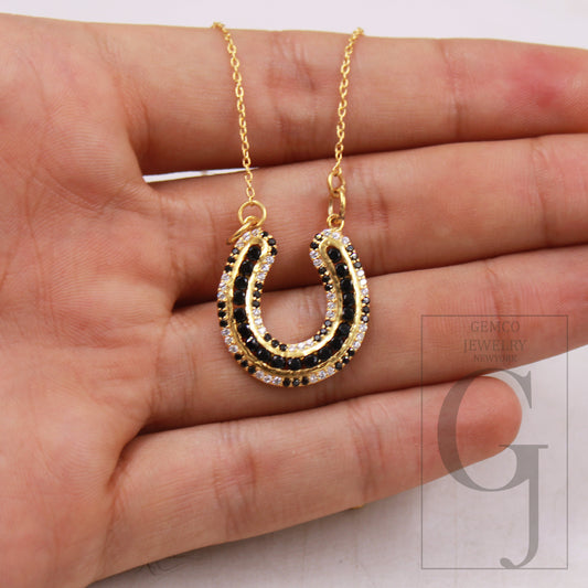 1pc Horseshoe Pendant Rosecut Pave Pendant 925 Sterling Silver Handmade Finish Jewelry Pendant White Topaz And Black Spinal Lucky Necklace