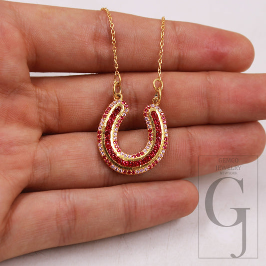 1pc Horseshoe Pendant In Ruby Red Color Stone Rosecut Pave Pendant 925 Sterling Silver Handmade Finish Jewelry Pendant Lucky Necklace