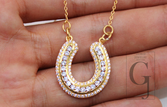 1pc 14k Gold Finish Horseshoe Pendant Rosecut Pave Pendant 925 Sterling Silver Handmade Finish Jewelry Pendant White Topaz Lucky Necklace