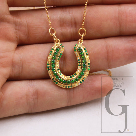 1pc Horseshoe Pendant Rosecut Pave Pendant 925 Sterling Silver Handmade Finish Jewelry Pendant Emerald Green Color Stone Lucky Necklace