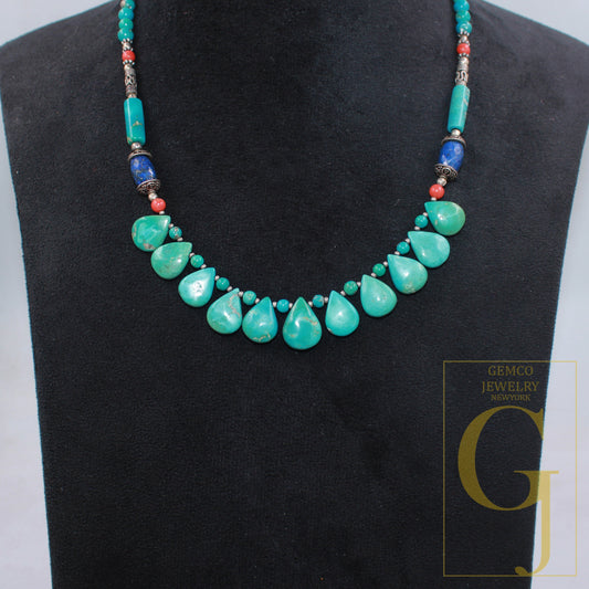 18" AAA Quality Natural Turquoise 925 Silver Necklace Handmade Jewelry With Lapis Lazuli And Coral Beads Beaded Necklace Beautiful Jewelry