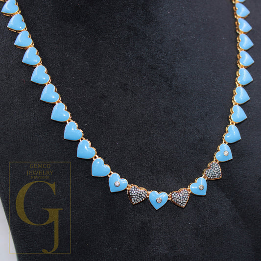 Heart Enamel & Rosecut Diamond Necklace – Handmade Sterling Silver Handmade Jewelry