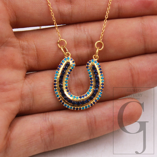 1pc Horseshoe Pendant In Blue Sapphire Color Stone Rosecut Pave Pendant 925 Sterling Silver Handmade Finish Jewelry Pendant Lucky Necklace