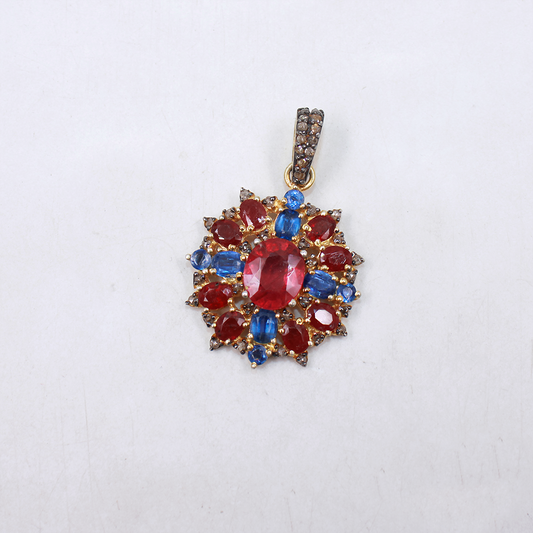 Natural Ruby And Kyanite Pendant With Pave Diamonds – Gold-Plated 925 Silver Handmade Jewelry