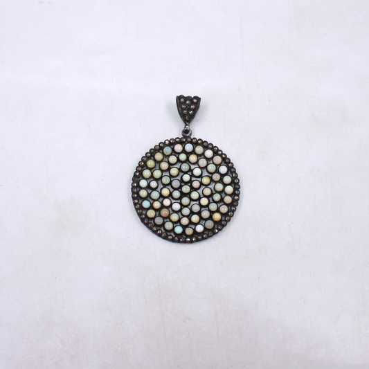 Natural Ethiopian Opal Pendant With Pave Diamonds In 925 Sterling Silver – Handmade Luxury Jewelry Gift For Her