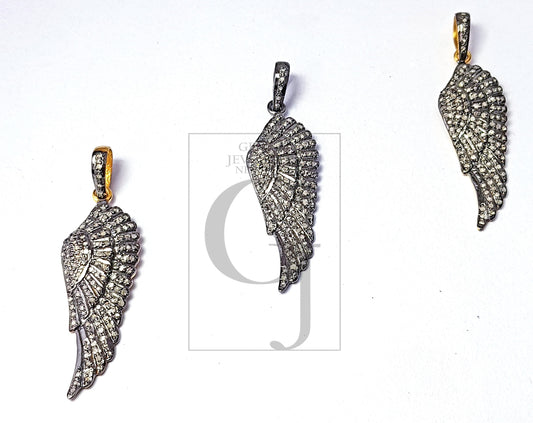 Beautiful Fairy Wings Design Rosecut Pave Diamond Pendant 925 Sterling Silver Handmade Finish Diamond Jewelry Fairy Wing Pendent