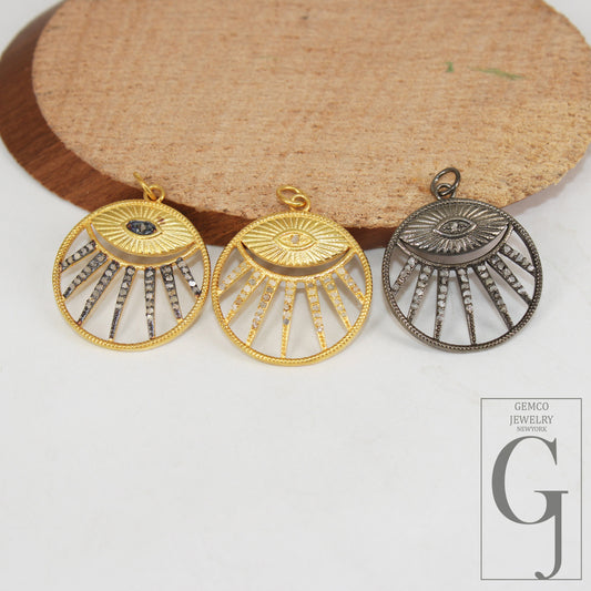 14k Gold Finish Evil Eye Pendant Designer Rosecut Pave Diamond Pendant 925 Sterling Silver Handmade Finish Diamond Charms Necklace Pendant
