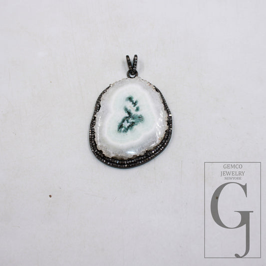 1pc Druzy Agate Slice White SOLAR Agate Pendant Rosecut Pave Diamond Pendant 925 Sterling Silver Handmade Finish Diamond Necklace Pendant