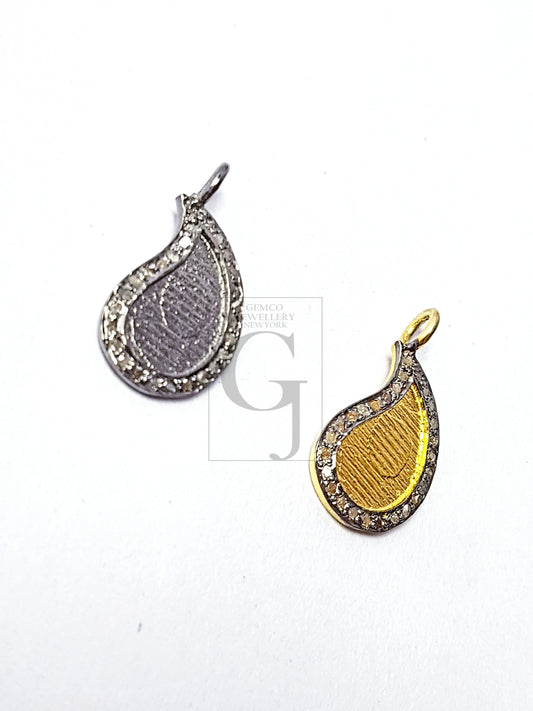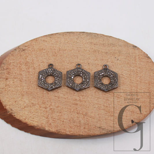 1pc Oxidized Look Pave Diamond Rosecut Pendant 925 Sterling Silver Pendant Handmade Diamond Pendant Charm Jewelry Making Supplies