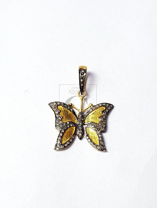 Beautiful Design Shaped Butterfly Enameling Colored Charm Pave Diamond Rosecut Pendant 925 Sterling Silver Pendant Handmade Diamond Pendant
