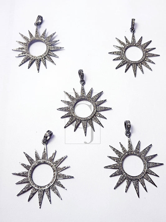 Very Beautiful Sunburst Circle Shaped Design Charm Pendant Pave Diamond Rosecut Pendant 925 Sterling Silver Pendant Handmade Diamond Pendant