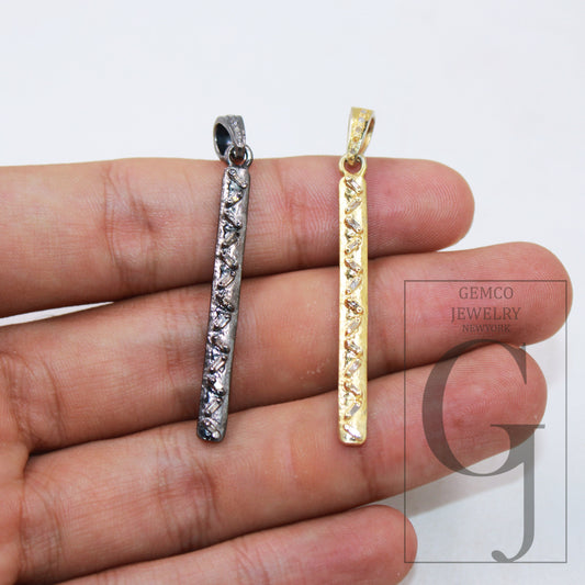 1pc Baguette Diamond Designer Bar Pendant 925 Sterling Silver Handmade Oixidized And Vermeil Gold Finish Jewelry