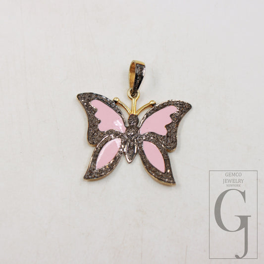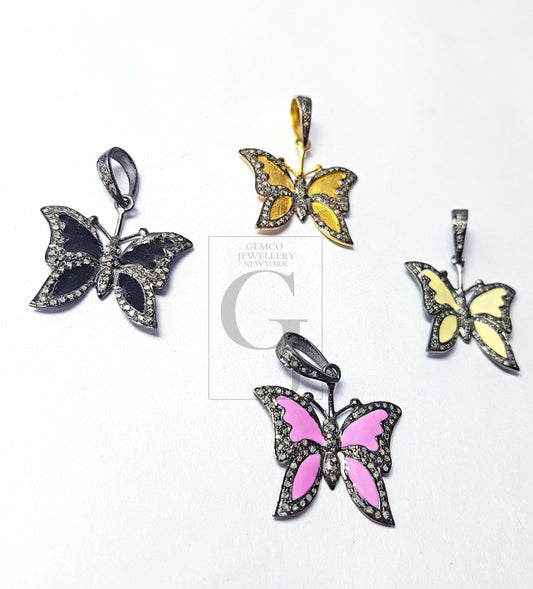 Beautiful Design Shaped Butterfly Enameling Colored Charm Pave Diamond Rosecut Pendant 925 Sterling Silver Handmade Diamond Pendant Jewelry