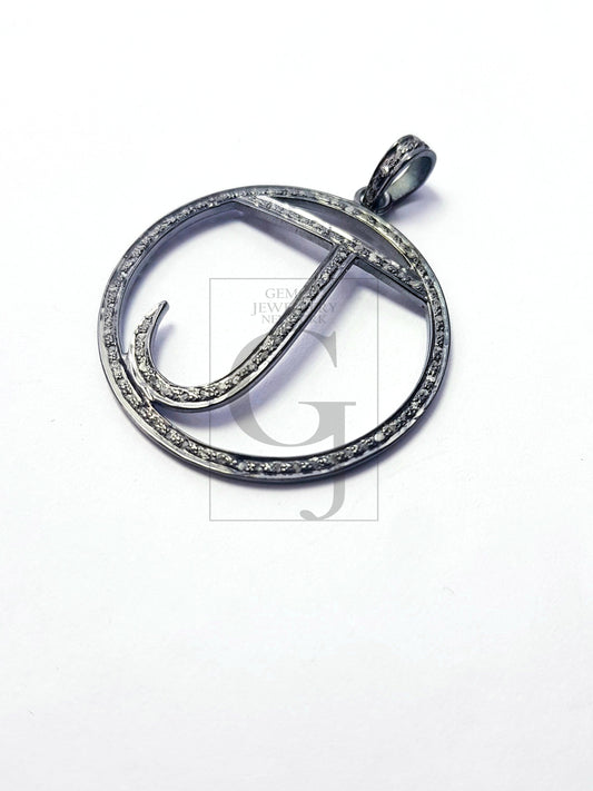 Alphabet Initial A-Z Initials Available Rosecut Pave Diamond Pendant 925 Sterling Silver Handmade Finish Diamond Jewelry Pendent Necklace